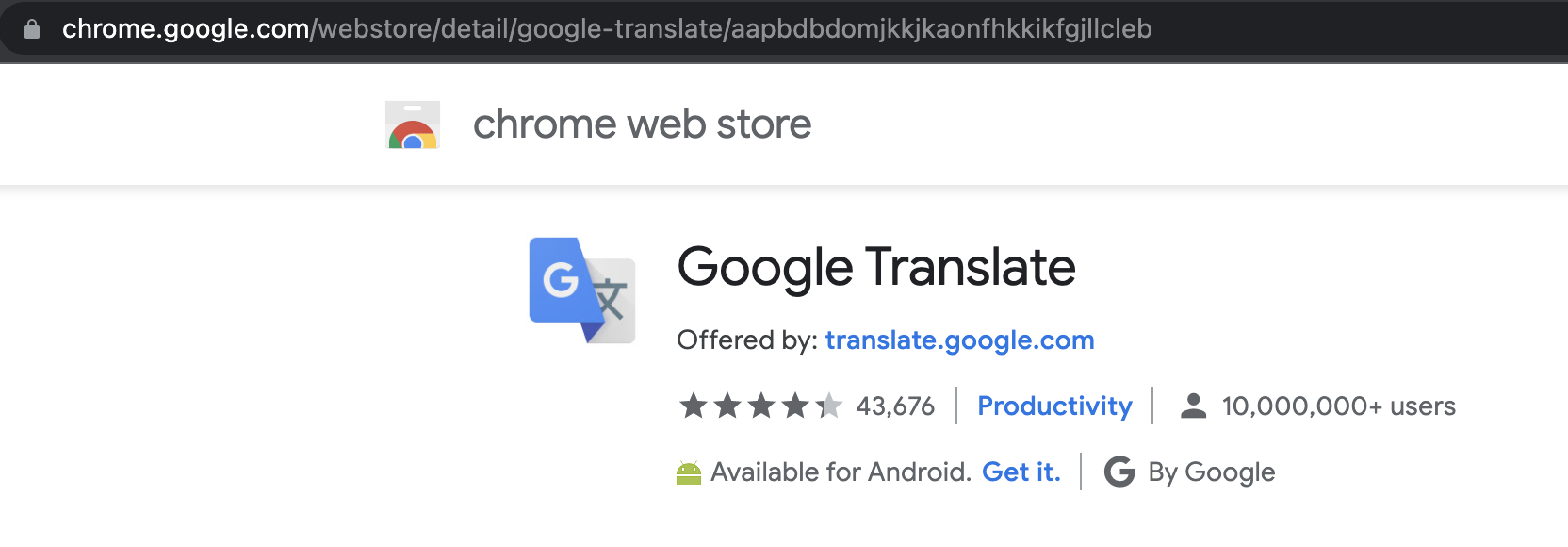 Figure 3 shows the store identifying the malicious extension as Google Translate.
