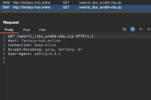 While it’s running, a small “Live stream active” message is shown so the system keeps it working. Once it’s stopped, it turns off the camera and microphone and closes the connection. To set up this the malware downloads required libs (Figure 12) from the command and control server.