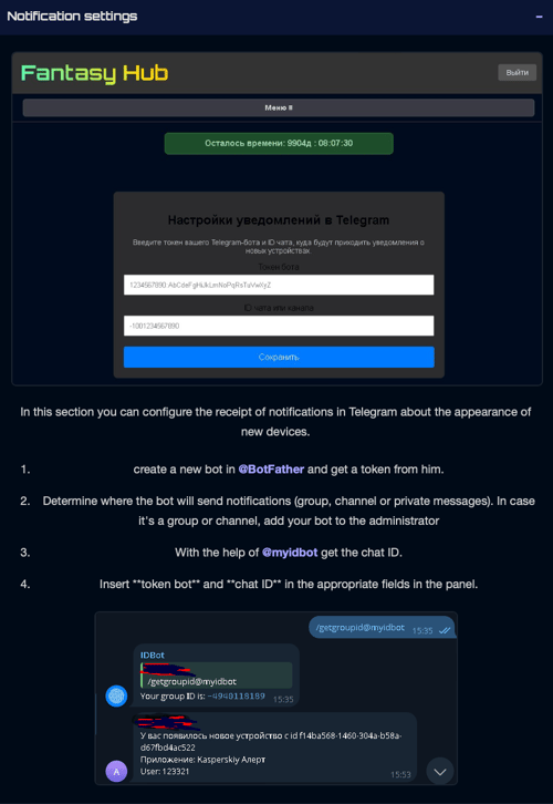Fig. 7: Sellers guiding the attackers on creating telegram channels to receive notifications