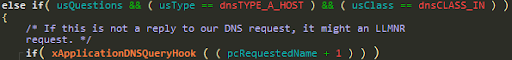 The same function (ulDNSHandlePacket) is used to parse both DNS and LLMNR queriesreplies.