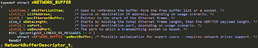 All packets are stored using the NetworkBufferDescriptor_t struct: