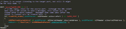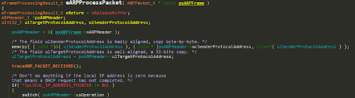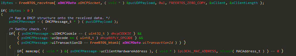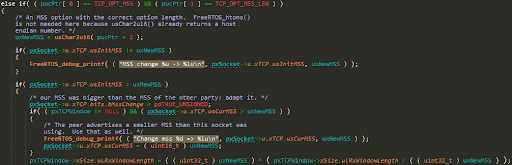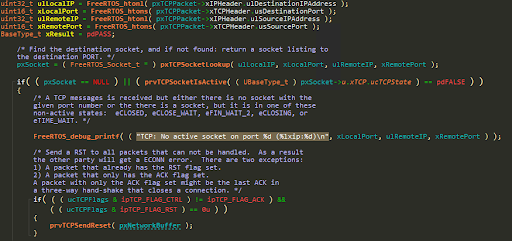I recommend reading the source code together with this disclosure to fully understand the vulnerabilities, and whether or not they are present in your configuration of FreeRTOS+TCP.