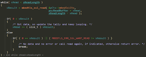 SOCKETS_Recv once again wraps TLS_Recv, that wraps mbedTLS: