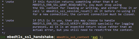 mbedtls_ssl_handshake might have left the TLS context in a corrupted state, and comments on the mbedTLS API explicitly warn users about this scenario:
