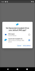 The malware, as previously noted, exploits both default SMS privileges and Accessibility Services. Upon installation, it first prompts the victim to grant Default SMS permission. Once this is granted, the malware then directs the victim to enable the Accessibility Service permission (Fig. 3).